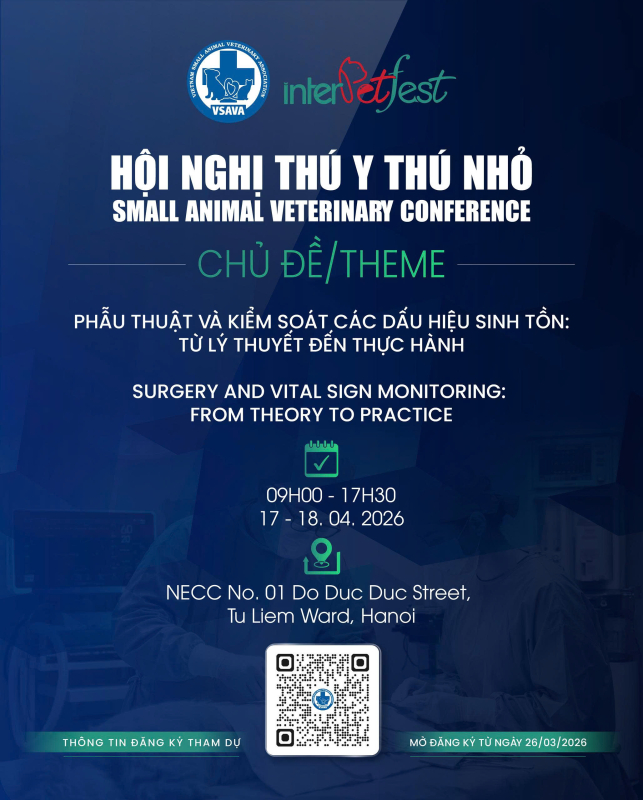 Tháng 4/2026, cộng đồng bác sĩ thú y sẽ cùng hội tụ tại Hội nghị Thú y Thú nhỏ 2026. Đây là một trong những sự kiện chuyên môn nổi bật của năm do Chi hội Thú y Thú nhỏ Việt Nam phối hợp tổ chức.